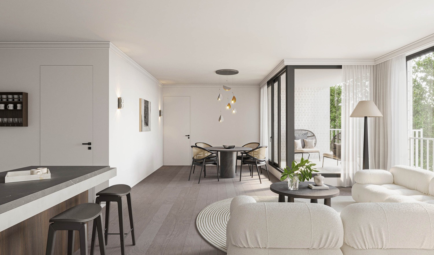 Dit stijlvolle penthouse op de derde verdieping van ‘De Mert’ combineert moderne architectuur met een gunstige ligging, vlakbij winkels, horeca en openbaar vervoer. Het appartement beschikt over een ruime woonkamer met open keuken, twee slaapkamers, een badkamer, berging, inkomhal met apart toilet en een zuidgeoriënteerd terras van circa 8 m² dat volop daglicht ontvangt.